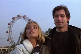 The film centers around his partnership with Kara. He pretends to be a friend of Koskov, who is her boyfriend. When they check into a hotel in Vienna, the concierge, with a wink, says, “Your usual suite, Mr. Bond?” Instead, he asks for a suite with separate bedrooms. They end up kissing on a giant ferris wheel. (I rode that ride in Vienna in 1991!) She resists, and creepy Bond says, “Don’t think, just let it happen.” It might be implied that they hook up after that, but we never see it. Same thing when they are in Afghanistan. He tells her she is beautiful and they kiss. No morning after scenes, as we’ve come to expect.